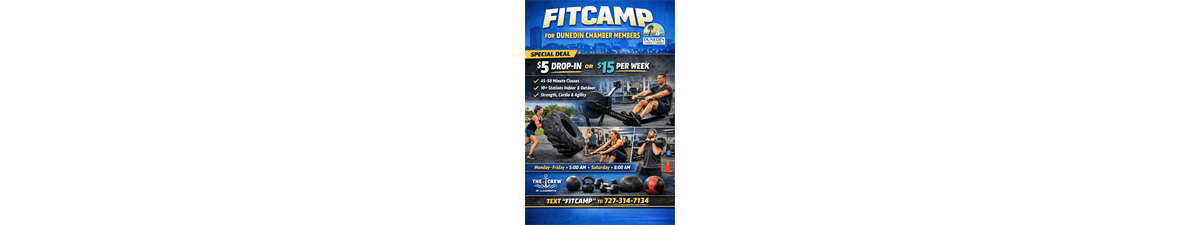 Dunedin Chamber of Commerce members are invited to train with us at a special rate! Join our energizing, community-focused FitCamp program designed for busy professionals who want to get stronger, feel better, and start the day with purpose.