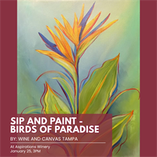 Join us for a vibrant and relaxing painting Sip and Paint event as we create “Bird of Paradise,” a bold, tropical bloom bursting with lively colors and island energy. This stunning floral piece is perfect for anyone who loves warm weather vibes and expressive brushstrokes.No painting experience? No worries! Our friendly instructor will guide you step-by-step—just come ready to sip, unwind, and let your creativity bloom.Perfect for a fun outing with friends, a unique date night, or a little “me time”